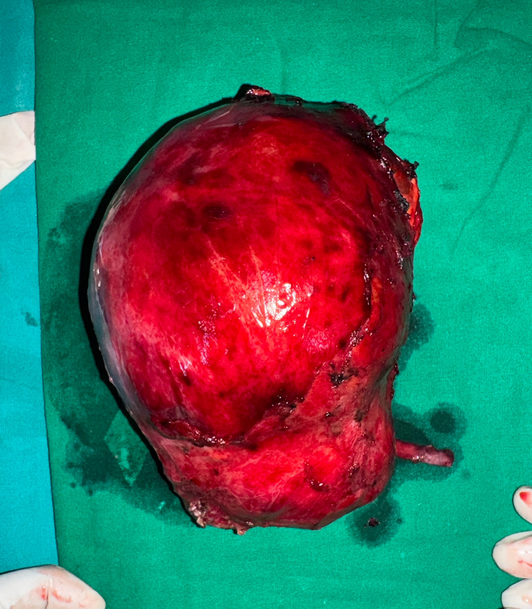 After anesthetic review and optimization, patient was counselled and taken for right Radical nephrectomy. Her post-operative recovery was uneventful and discharged on day 6. Post-nephrectomy histopathology revealed Clear cell RCC, Fuhrman grade II, confined to kidney with negative margins. A month after surgery, a full liver function test (LFT) was performed, and liver enzymes and bilirubin levels had returned to baseline, supporting a diagnosis of Stauffer’s syndrome.